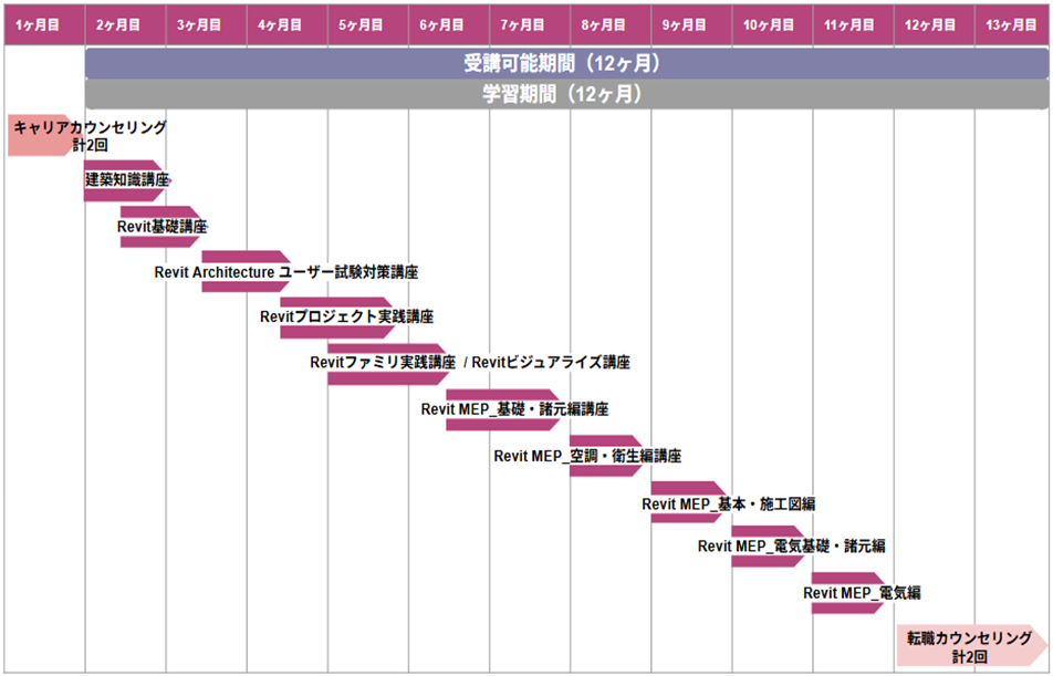 (※RevitMEP講座の受講開始日は、お申込みから6ヶ月後になります)